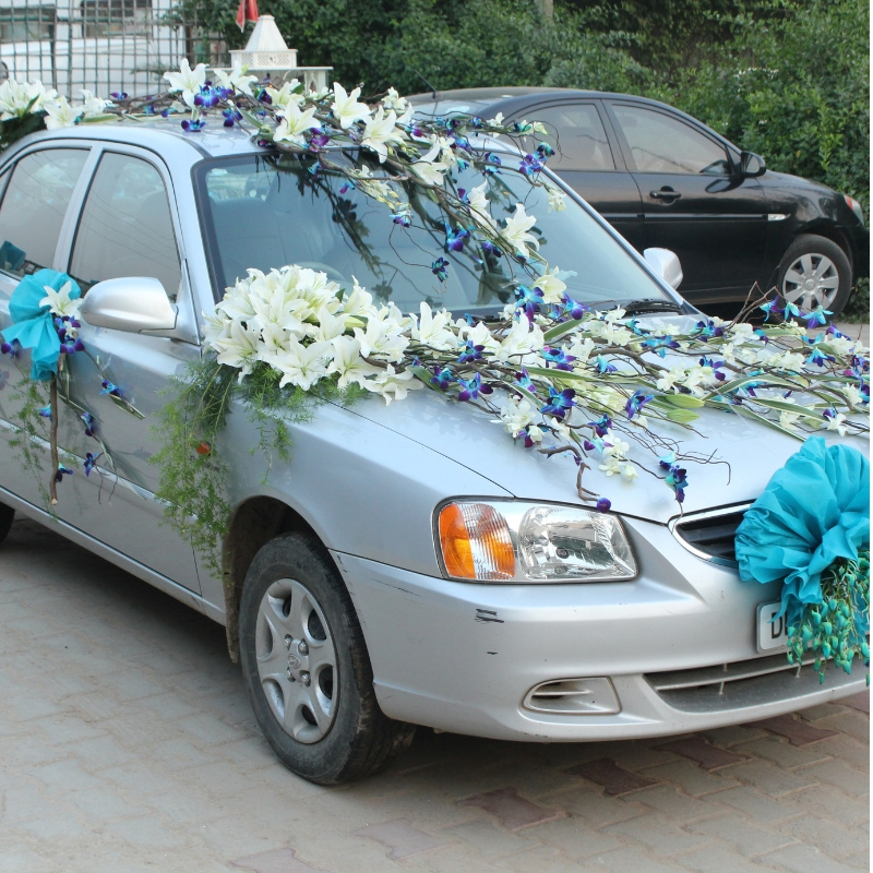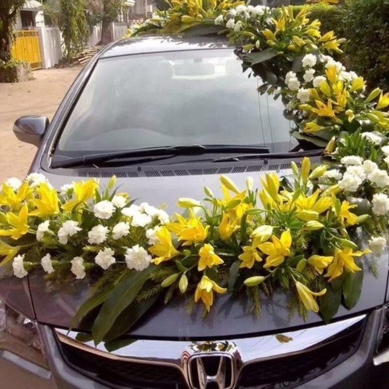 Car décor using flowers adds a touch of elegance and charm, perfect for weddings, celebrations, and special occasions. Fresh floral arrangements enhance the vehicle’s look, creating a beautiful, festive, and memorable impression.
