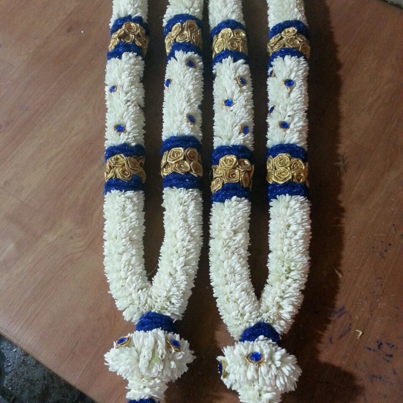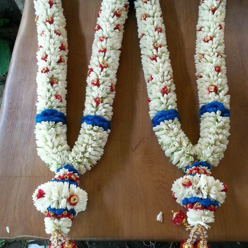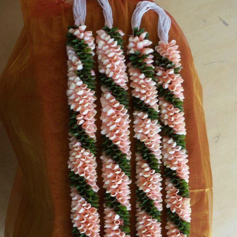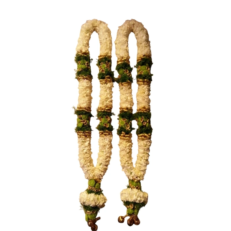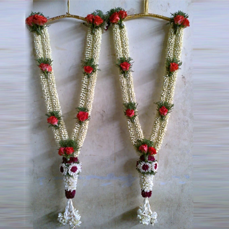 Flower garlands are traditional strings of fresh blooms, symbolizing beauty, purity, and celebration. They are used for adorning spaces, welcoming guests, and adding a festive, fragrant touch to special occasions.