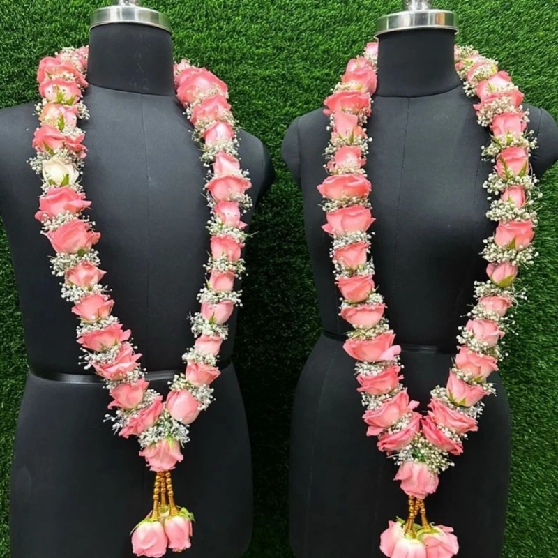 We craft traditional, temple, wedding, and pooja garlands using fresh flowers like jasmine, rose, marigold, and mogra, as well as modern garlands with artificial or preserved blooms.
