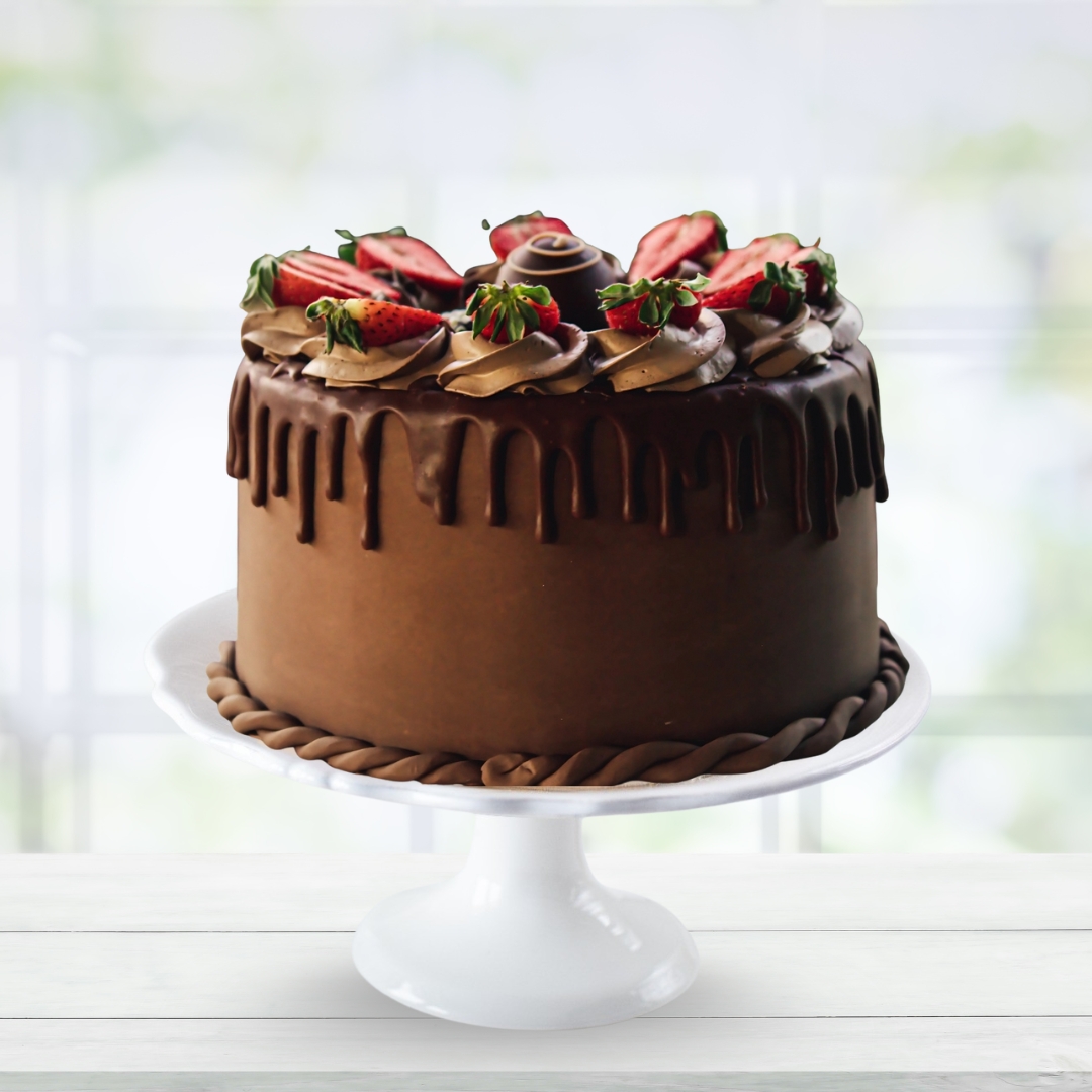 Experience pure indulgence with our Ultimate Chocolate Cake with Strawberries, a dessert crafted for true chocolate lovers. This luxurious cake features layers of moist, rich chocolate sponge coated in velvety chocolate ganache and topped with fresh, juicy strawberries for a burst of fruity freshness.